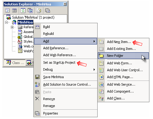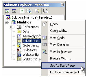 - Xác định Project khởi động (trong trường hợp Solution có nhiều Project): Chọn Set as StartUp Project từ thực đơn ngữ cảnh.