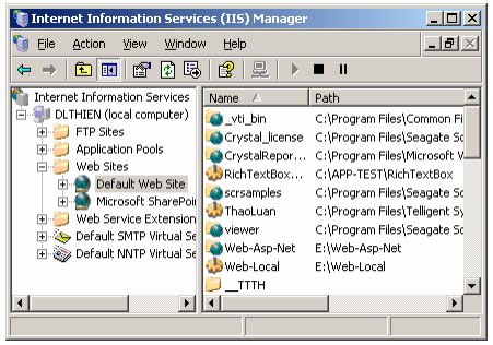 Để cấu hình IIS, vào Control Panel| Administrative Tools|Internet Services Manager.