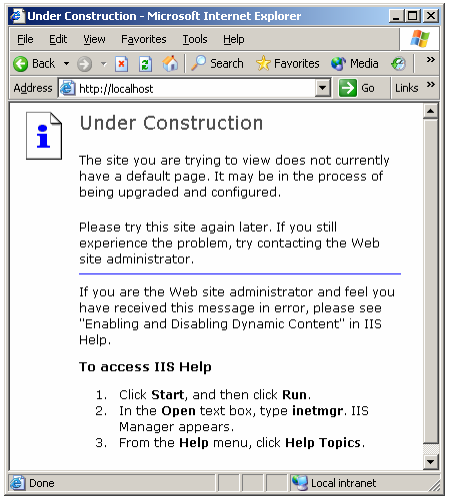 Sau khi đã cài đặt IIS, bạn có thể kiểm tra xem Web Server đã làm việc hay chưa. Mở web browser (Internet Explorer) và gõ: //localhost trong phần địa chỉ. Một khi Web server đã được cài đặt, một trang web mẫu sẽ được hiển thị.