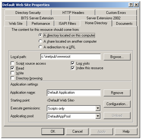 Trên các hệ điều hành Windows 2000/XP, Microsoft sử dụng công cụ Microsoft Management Console (MMC) để làm công cụ quản lý, do đó tất cả các thao tác đều sử dụng menu ngữ cảnh bằng cách nhắp chuột phải trên mục muốn chọn. Chọn Properties của mục Default Web Site, bạn có thể xem và cấu hình lại các thông tin dành cho trang web mặc định của mình.