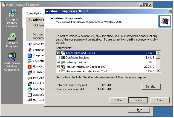 Bước 5 : Chọn các mục cần cài đặt trong đó bạn nhớ chọn: - FrontPage 2000 Server Extensions - Internet Information Services Snap-In - Internet Services Manager (HTML)