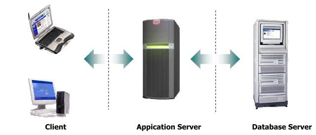 Mô hình 3 lớp sử dụng thêm Application Server giữ nhiệm vụ tương tác giữa Client và Database server, giảm bớt các xử lý trên Database server, tập trung các xử lý nhận và hiển thị dữ liệu tại Application server.