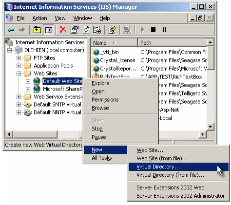 - Chọn mục New | Virtual Directory trên menu ngữ cảnh.