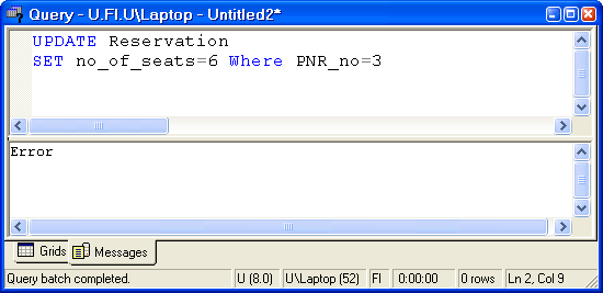 Tạo INSERT trigger có tên ins_chkclass trên bảng Reservation. Trigger đảm bảo rằng dữ liệu được nhập vàp trường class code tồn tại trong bảng Class_master và số ghế được đặt không quá 2.