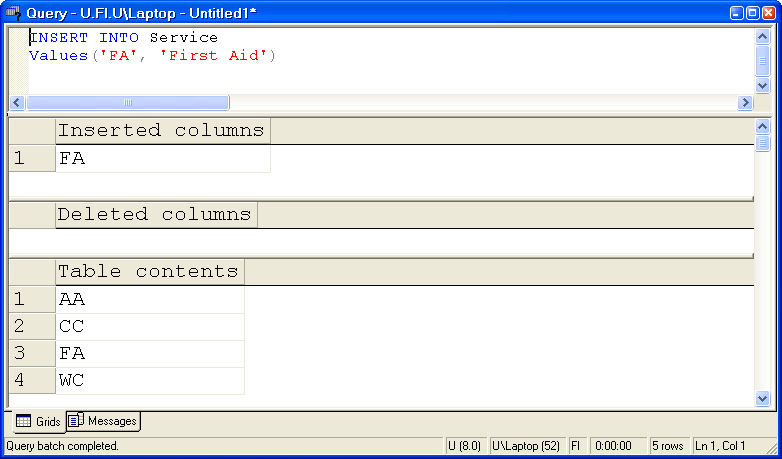 2. Thực hiện truy vấn sau để kiểm tra Trigger: