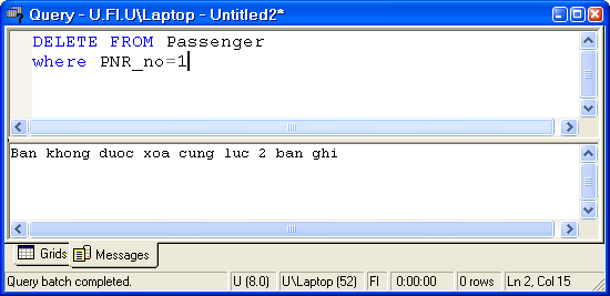 2. Thực hiện câu lệnh xoá nhiều hơn 2 bản ghi từ bảng Passenger, giả sử như sau: