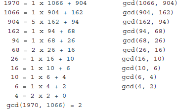 Như vậy để tìm ước số chung của một cặp số cho trước, ta đưa về bài toán tìm ước chung của cặp số gồm số nhỏ hơn trong hai số đó và phần dư của số lớn khi chia cho số nhỏ hơn. Thuật toán Ơcơlít tạo nên vòng lặp, ở mỗi bước ta áp dụng tính chất trên cho đến khi phần dư đó còn khác 0.