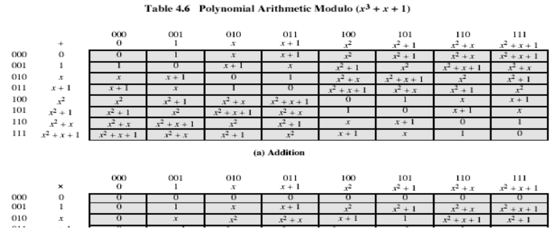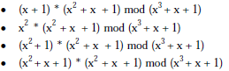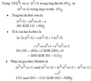 Biểu diễn phép nhân đa thức với hệ số theo mod 2 và theo module đa thức sau ( + x + 1) (gọi là GL( ):