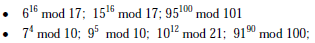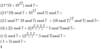 (a.b) mod n = [a mod n . b mod n] mod n (**)