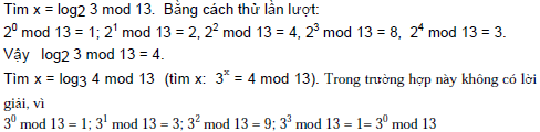 Bài toán ngược của bài toán lũy thừa là tìm logarit rời rạc của một sô modulo p, tức là tìm số nguyên x sao cho