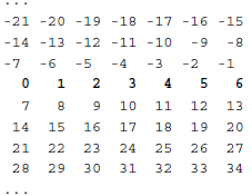 Các phần tử cùng cột là có quan hệ đồng dư vói nhau. Tập các đại diện của các số nguyên theo Modulo n gồm n phần tử ký hiệu như sau: