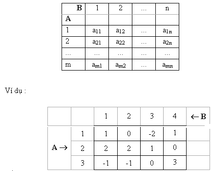 Giải thưởng ứng với chiến lược (i,j) của hai người được ký hiệu là aij và được viết thành một bảng như sau :