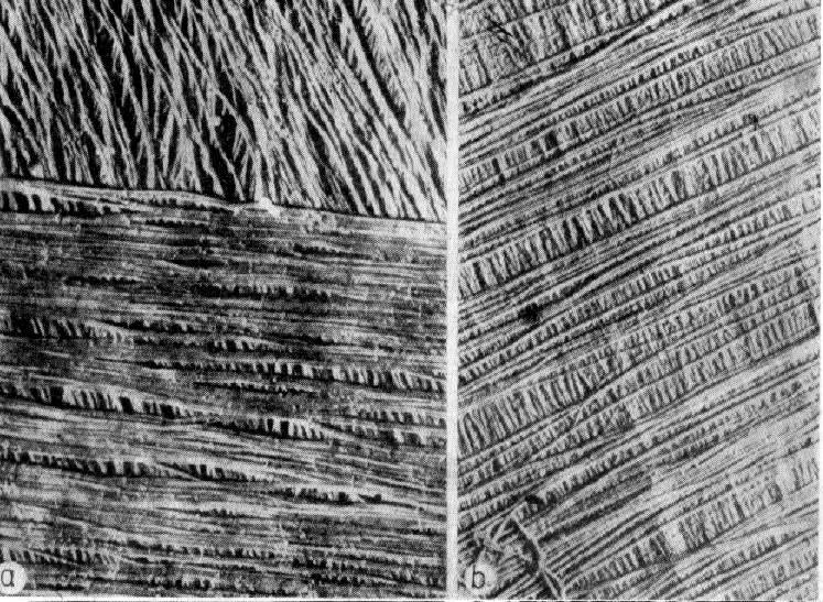 Các lớp vách được phân loại theo quan niệm của Kerr và Bailey (Arnold. Arboretum Jour.15,1934) C, D- tế bào với vách thức cấp và các lỗ đơn. C- các thể cứng từ một lát cắt ngang của quả Cydonia (mộc qua). D- Sợi libe từ một lắt cắt ngang của thân Nicotianna (thuốc lá) C- x420; D- x 325; (C,D x 560)