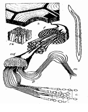 Trong vách tế bào, người ta không thể thấy được chiều dài tận cùng của các sợi bé. Sau khi rửa nước và thuỷ phân với axit phù hợp thì làm xuất hiện màu trắng đục và đem quan sát dưới kính hiển vi điện tử, người ta có thể xác định được kích thước các sợi bé: Chiều rộng vào khoảng 50 - 100A0, chiều dài từ hàng trăm đến hàng nhìn A0 (hình 6). Trong sợi bé có 4 - 6 sợi cơ sở. Những sợi bé tập hợp lại thành bó và tạo thành sợi lớn ([link])