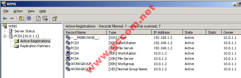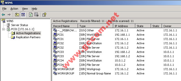 Đến đây nghĩa là lúc này WINS Server của mạng thứ 1 đã có thể phân giải tên & số các máy trong cùng mạng của nó