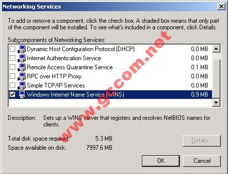 Tiếp tục chọn dịch vụ Windows internet Name Service (WINS) và nhấp OK