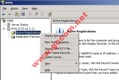 Trong màn hình WINS nhấp phải vào Active Registrations và chọn Display Records