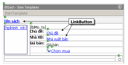 Trong xử lý sau, chúng ta gán giá trị cho thuộc tính CommandArgument của các LinkButton để lưu trữ các mã tương ứng cho từng điều khiển.