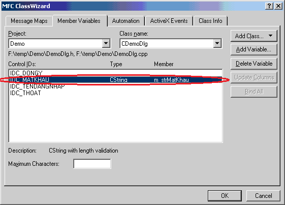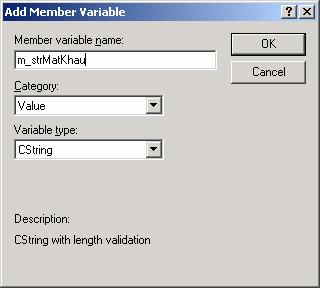 | IDC_MATKHAU | m_strMatKhau | CString | Mật khẩu |