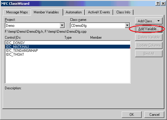 - Sử dụng member Variables trong Class Wizard để tạo biến đại diện cho một control