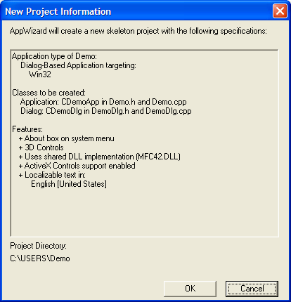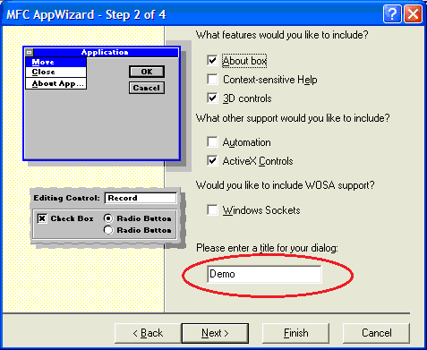 Bước 1 : Tạo một project mới sử dụng MFC AppWizard. Đặt tên cho project mới là Demo.