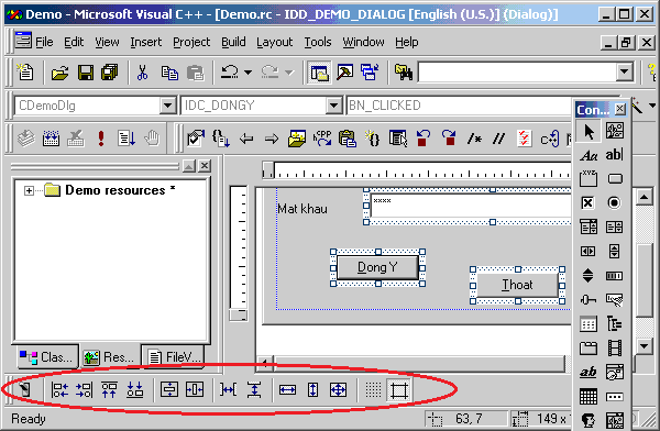 - Canh giữa control theo chiều cao, chiều rộng của dialog.