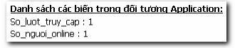 Do tại một thời điểm có thể có nhiều người cùng lúc truy cập và thay đổi giá trị của các thông tin được lưu trong đối tượng Application, chúng ta nên sử dụng bộ lệnh Lock và UnLock ngay trước và sau khi cập nhật giá trị của biến Application.