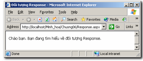 Response.Write("Chào bạn. Bạn đang tìm hiểu về đối tượng Response.")