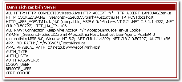 Response.Write("<b><u>Danh sách các biến trong đối _
