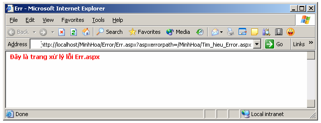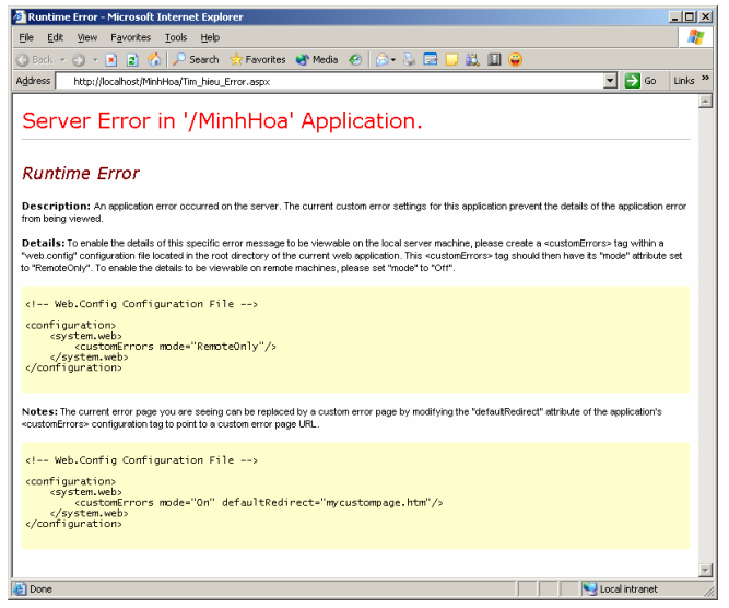 Đây là một cấu hình khá cần thiết cho ứng dụng Web. Hiệu chỉnh cấu hình này cho phép chúng ta quản lý việc xử lý lỗi khi có lỗi phát sinh trong ứng dụng.