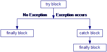 Khối ‘try-catch’ được sử dụng để thi hành mô hình ‘catch và throw’ của việc xử lý ngoại lệ. Khối ‘try’ chứa một tập lệnh có thể thi hành được. Các ngoại lệ có thể bị chặn khi thi hành tập lệnh này. Phương thức có khả năng tạo ra ngoại lệ có thể được khai báo trong khối ‘try’. Một hay nhiều khối ‘catch’ có thể theo sau một khối ‘try’. Các khối ‘catch’ này bắt các ngoại lệ có khả năng tạo ra trong trong khối ‘try’. Hãy xem khối ‘try’ dưới đây: