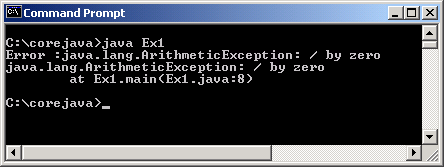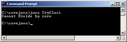 Trong chương trình này, một số được chia cho 0. Đây không là phép toán số học hợp lệ. Do đó một ngoại lệ xảy ra và được bắt giữ trong khối catch. Khi nhận biết được loại ngoại lệ nào có thể xảy ra, ta viết lệnh trong khối ‘catch’ tương ứng. Ở đây, ‘a’ được sử dụng như một đối tượng của ArithmeticException để in các chi tiết về ngoại lệ. Nếu bạn thay thế lệnh ‘System.out.println’ của khối ‘catch’ bằng lệnh ‘System.out.println(a.getMessage())’