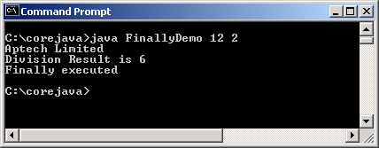 Chương trình dưới đây sẽ sử dụng khối ‘finally’. Ở đây, khối ‘finally’ được thi hành bất chấp ‘ArithmeticException’ có xảy ra hay không. Khối này khai báo các hoạt động thu dọn.
