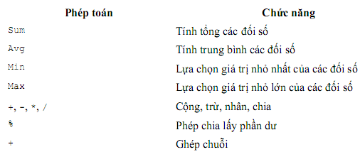 Cú pháp biểu thức rất nhiều và hỗ trợ rất nhiều phép tính toán học và chuỗi. Bảng 4.1 đưa đến tất cả các phép toán được .NET Compact Framework hỗ trợ.