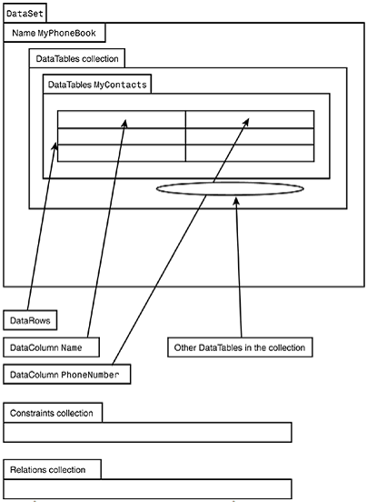 , cột thứ nhất lưu trữ tên và cột thứ hai lưu trữ số điện thoại. Đoạn mã sau mô tả năm bước cần thiết để thêm dữ liệu vào một DataSet