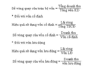 - Chỉ tiêu về hiệu quả sử dụng vốn: thông qua vốn lưu động và vốn cố định để đánh giá khả năng sử dụng vốn của doanh nghiệp. Ta dùng các chỉ số sau để đánh giá hiệu quả sử dụng vốn: