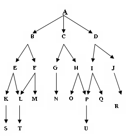 Ngược lại, tìm kiếm rộng sẽ khảo sát không gian này theo từng mức. Chỉ đến khi trong một mức cho trước không còn một trạng thái nào để khảo sát thì thuật toán mới chuyển sang mức tiếp theo. Tìm kiếm rộng trong đồ thị hình 3.8 sẽ xem xét các trạng thái theo thứ tự A, B, C, D, E, F, G, H, I, J, K, L, M, O, P, Q, R, S, T, U.