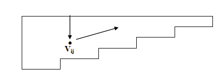 Để tính Vij với j > i, ta phải thực hiện vòng lặp For ở bước (6) và (7). Ta phải đối chiếu Vik với Vi+ k, j – k với k = 1, 2, …, j - 1 để tìm biến D trong Vik và biến E trong Vi+ k, j – k sao cho DE là vế phải của một hay nhiều luật sinh. Các vế trái của những luật sinh đó được đưa vào trong Vij. Quá trình đối chiếu đó diễn ra bằng cách giảm dần giá trị cột i, đồng thời tăng dần lên theo đường chéo qua Vij về phía phải như các chiều mũi tên vẽ trong hình 5.9.