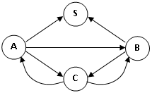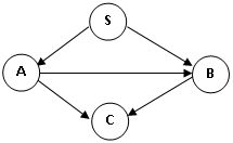 Nếu ta thêm vào văn phạm một luật sinh mới : C → AB, thì đồ thị có hướng tương ứng lúc đó có dạng như sau :