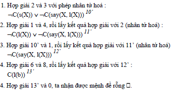 - Hợp giải 7 với 3, rồi lấy kết quả hợp giải với 1 :