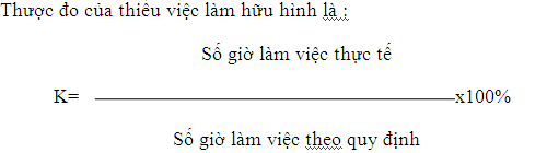-Thiếu việc làm hữu hình : Là hiện tượng người lao động làm việc với thời gian ít hơn quỹ thời gian qui định , không đủ việc làm và đang có mong muốn kiếm thêm việc làm và luôn sẵn sàng để làm việc .