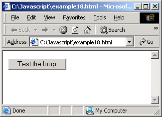 <HTML> <HEAD> <SCRIPT LANGUAGE = "JavaScript"> function doloop() { var String1 = '<hr align="center" width='; document.open(); for (var size = 5; size <= 100; size+=5) document.writeln(String1 + size + '%">'); document.close(); } </SCRIPT> </HEAD> <BODY> <FORM> <INPUT type="button" value="Test the loop" onclick = "doloop()" > </FORM> </BODY> </HTML>