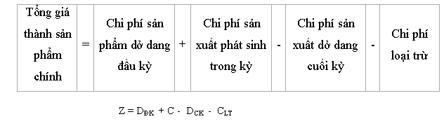 Giá thành sản phẩm theo phương pháp này được tính bằng công thức sau: