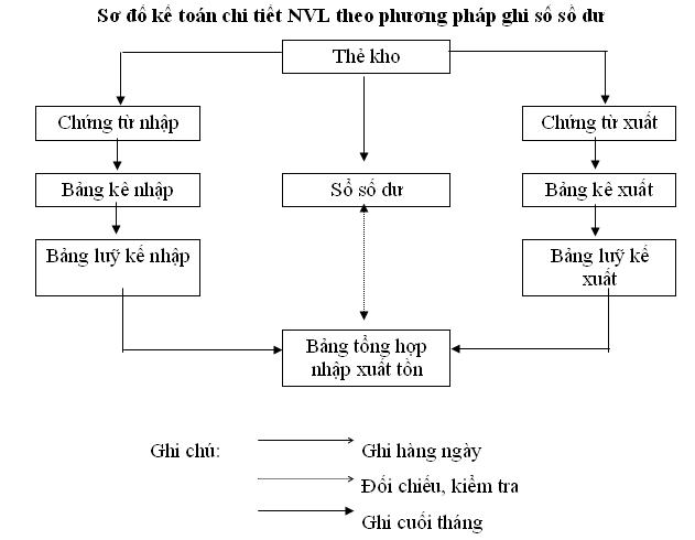 * Tại kho: Ngoài sử dụng thẻ kho để ghi chép sử dụng sổ số dư để ghi chép số tồn kho cuối tháng của từng loại NVL theo chỉ tiêu số lượng. Cuối tháng sổ số dư được chuyển cho thủ kho để ghi số lượng hàng tồn kho trên cơ sở số liệu từ thẻ kho.