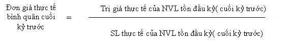 Với phương pháp này kế toán xác định giá đơn vị bình quân trên giá thực tế và lượng nguyên vật liệu tồn kho cuối kỳ trước.