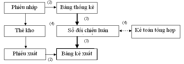 Cuối tháng đối chiếu số lượng vật tư trên sổ đối chiếu số luân chuyển với thẻ kho, đối chiếu số tiền với kế toán tổng hợp.