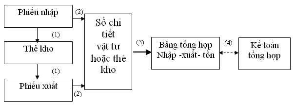 + ở kế tóan: Kế tóan cũng mở một thẻ tương ứng và một sổ chi tiết để ghi chép tình hình nhập, xuất, tồn kho cả về mặt lượng và giá trị.
