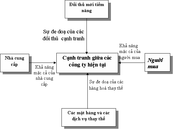 Cạnh tranh, một mặt thúc đẩy cho doanh nghiệp đầu tư máy móc thiết bị, nâng cấp chất lượng và hạ giá thành sản phẩm…Nhưng một mặt nó dễ dàng đẩy lùi các doanh nghiệp không có khả năng phản ứng hoặc chậm phản ứng với sự thay đổi của môi trường kinh doanh. Các yếu tố cạnh tranh được thể hiện qua mô hình sau: