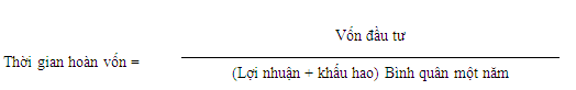 + Thời gian hoàn vốn: là số năm mà dự án cần thiết phải hoạt động để tổng số lợi nhuận và khấu hao thu được bù đắp số vốn đầu tư bỏ ra ban đầu.