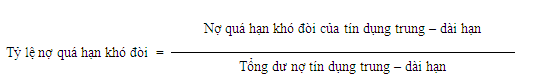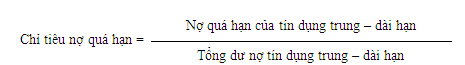 Chỉ tiêu này cho biết tỷ lệ nợ quá hạn của trung - dài hạn chiếm bao nhiêu phần trăm trong tổng dư nợ tín dụng. Tỷ lệ này không có hoặc càng nhỏ càng tốt.